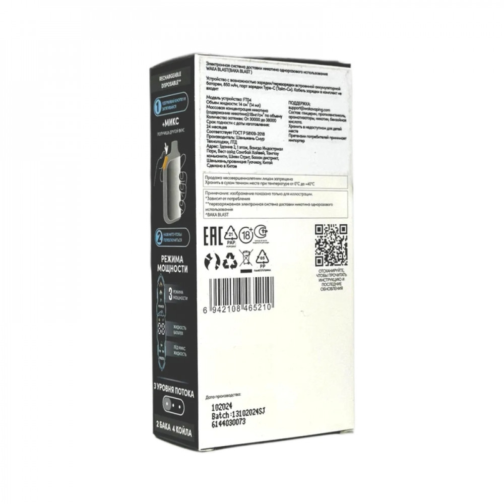 Испаритель4xMESH COIL Кнопка активацииДа Количество затяжек, шт38000